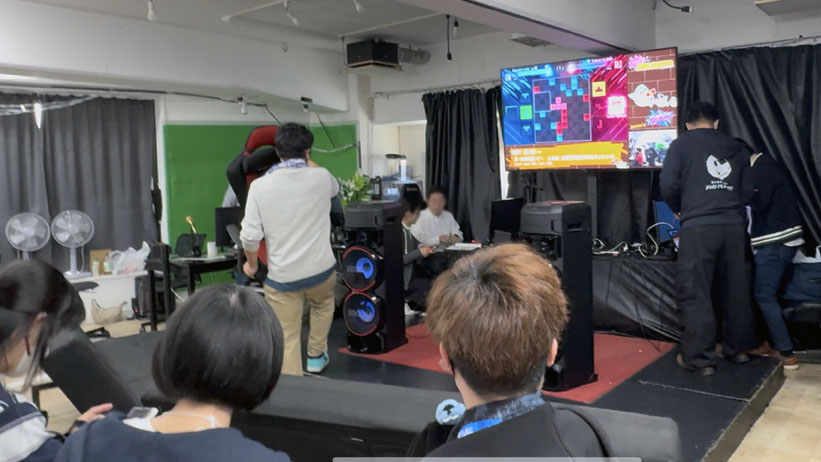 後方で黙々とSHIKA-Qをプレイし続ける光景が広がっていました。